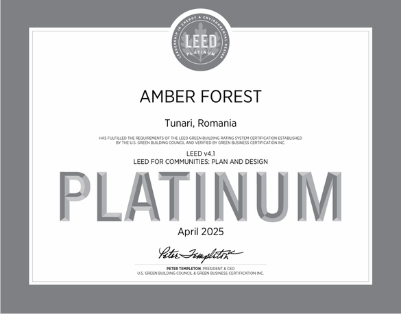 Amber Forest obține prima certificare din Europa – LEED v4.1 pentru Comunități: Planificare și Design, la nivel Platinum